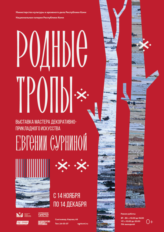 Выставка «Родные тропы» продемонстрирует произведения мастера декоративно-прикладного искусства Евгении Сурниной, деятельность которой направлена на популяризацию, возрождение и сохранение традиций коми народного творчества. Два десятка работ позволят наглядно в этом убедиться в Национальной галерее Республики Коми.