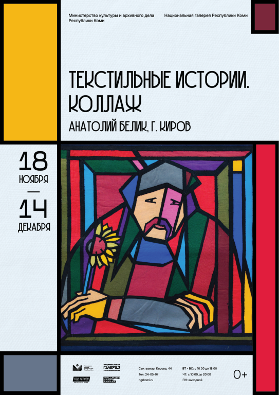 Национальная галерея Республики Коми открывает новую выставку, которая представляет работы в технике текстильного коллажа члена Союза художников России, заслуженного художника Российской Федерации Анатолия Белика из города Кирова. В выставочном пространстве художественного музея зритель увидит 40 декоративных панно из авторской коллекции, а также произведения мастера из собрания Галереи.