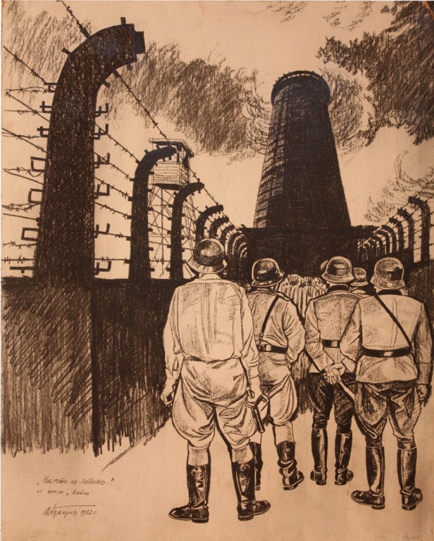 Бухаров А.П. Никто не забыт... Из цикла «Война». 1982. Бумага, угольный карандаш. НГРК